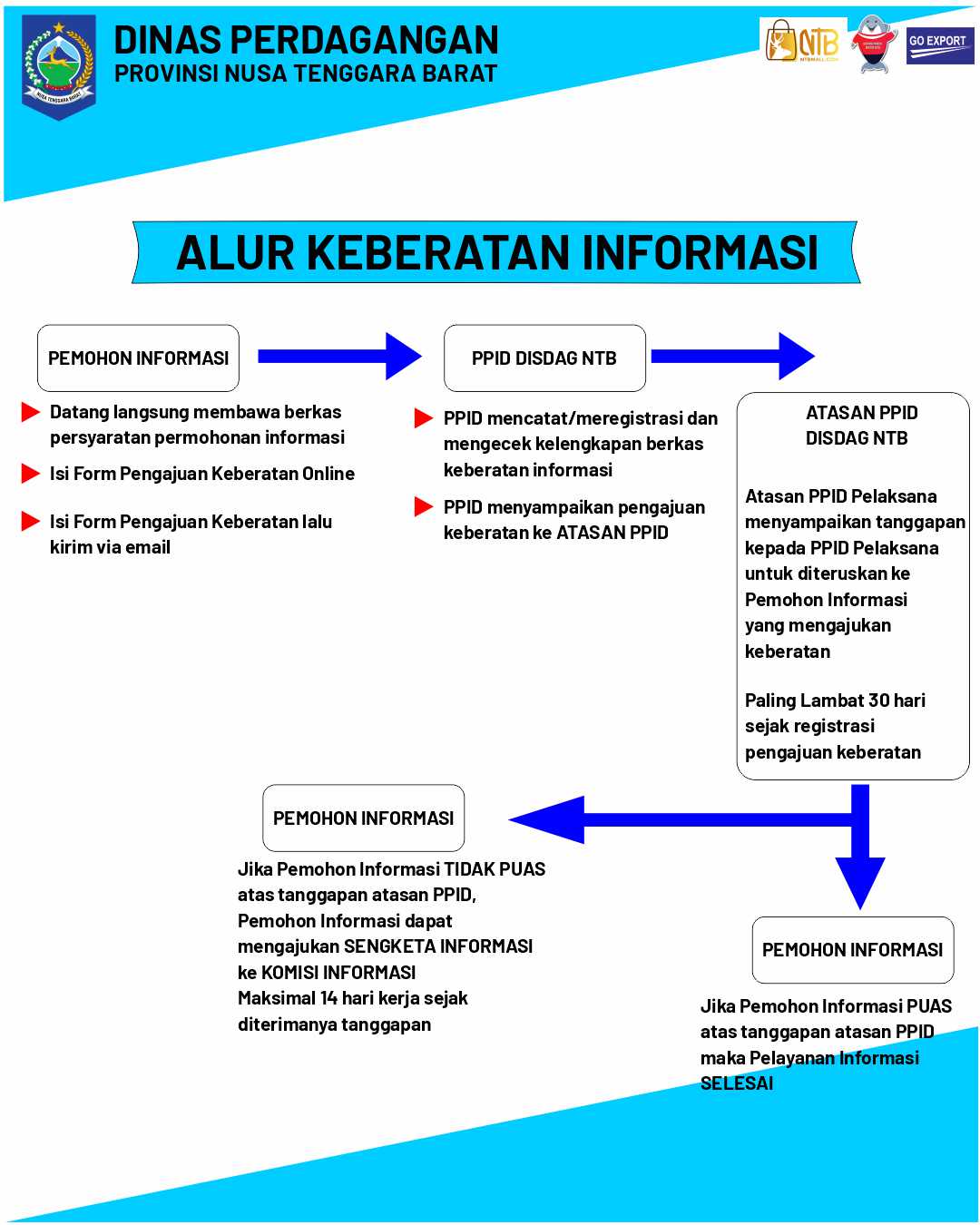 Dinas Perdagangan Provinsi Nusa Tenggara Barat sebagai salah satu Badan Publik yang terbentuk Januari 2017, sebelumnya dengan nama Dinas Perindustrian dan Perdagangan telah membentuk Pejabat Pengelola Informasi dan Dokumentasi Pembantu (PPIDP) melalui Surat Keputusan Kepala Dinas Perdagangan NTB Nomor: 061.9/527/01-DISDAG/I/2017 dan setiap tahun di perbarui, terakhir dengan Surat Keputusan Kepala Dinas Perdagangan Provinsi Nusa Tenggara Barat Nomor: 061.9/01.55/01-Disdag/I/2025 Tentang Penetapan Pejabat Pengelola Informasi dan Dokumentasi Pelaksana (PPIDP) Pada Dinas Perdagangan Provinsi Nusa Tenggara Barat Tahun 2025.