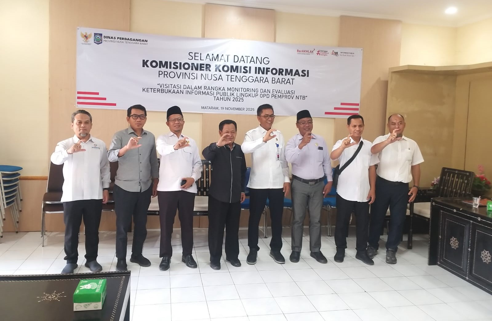 Kepala Dinas Perdagangan NTB, Jamaluddin, S.Sos., MT Menerima kunjungan dari Komisioner Komisi Informasi Provinsi NTB dalam rangka Visitasi, Monitoring dan Evaluasi Keterbukaan Informasi Publik di Aula Dinas Perdagangan pada Rabu, 19 November 2025.
